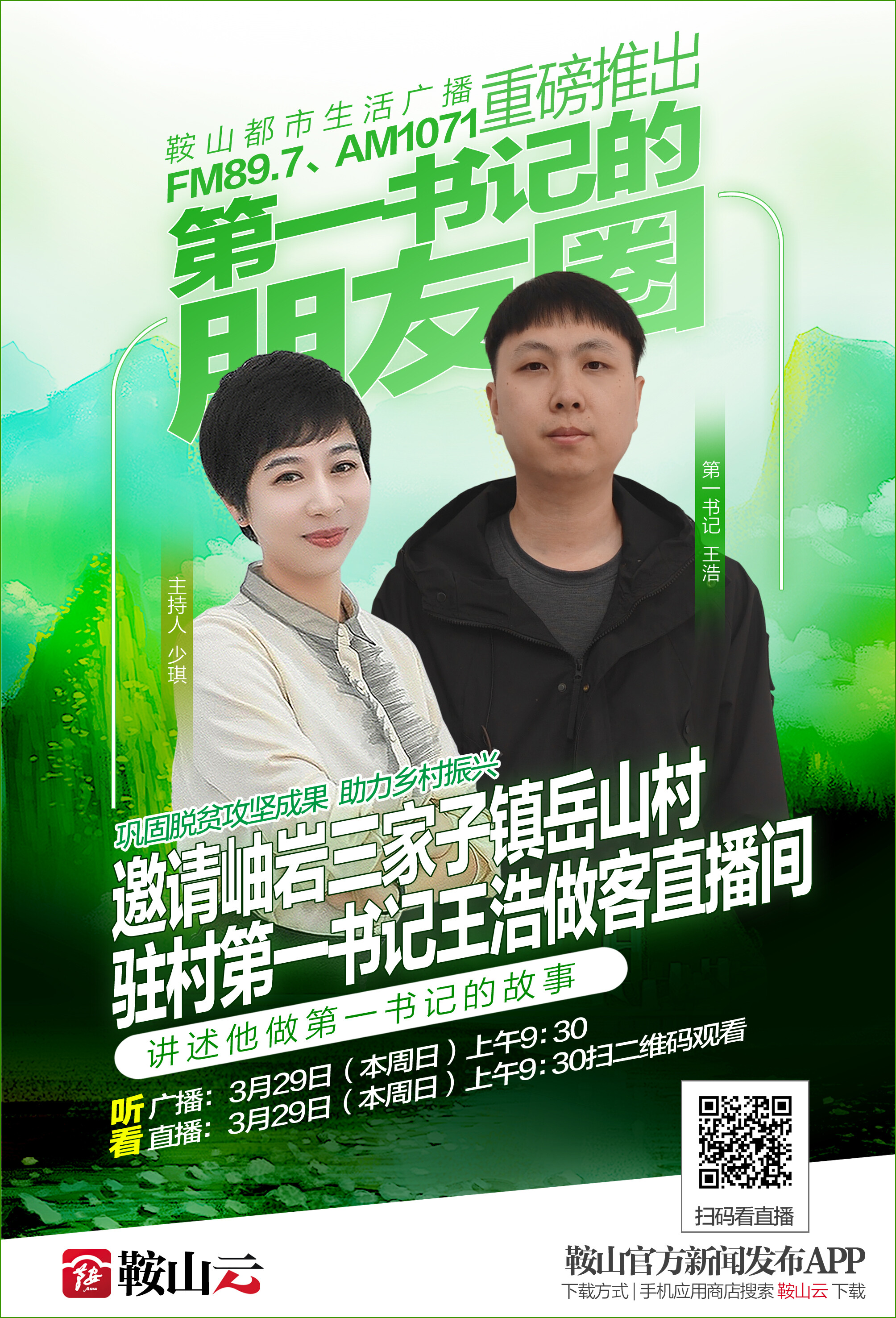 3月29日(本周日)上午9点30分鞍山都市生活广播、鞍山云现场直播,欢迎收听收看。