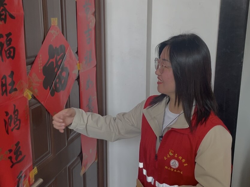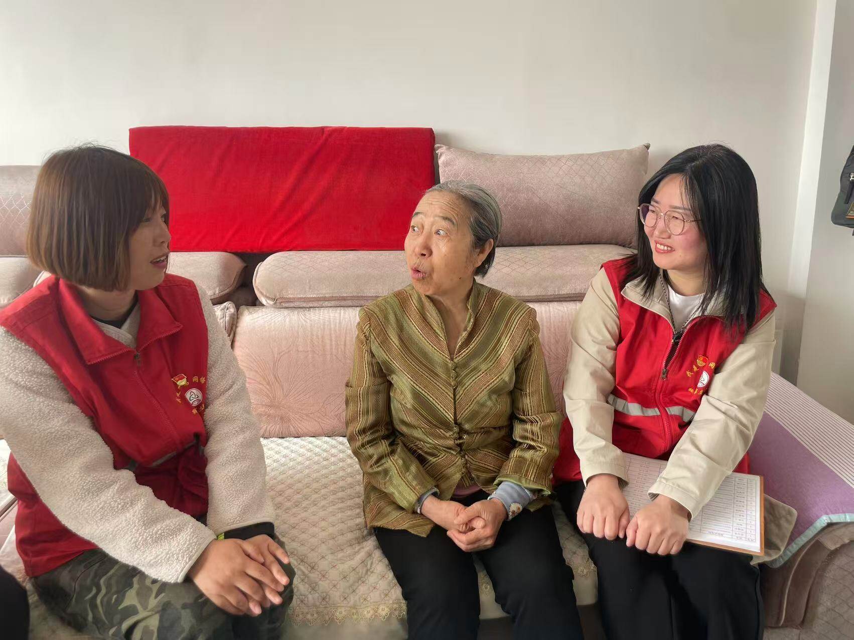 在张阿京家中,潘丽娜坐在老人身边,轻声询问最近身体怎么样、降压药按时吃了没有。张阿京早年经历了孩子离开的伤痛,一度走不出来。“多亏了他们,总来陪我说话,让我觉得自己还有家人。”她指了指潘丽娜和李琛,“他们都是我的家人。”