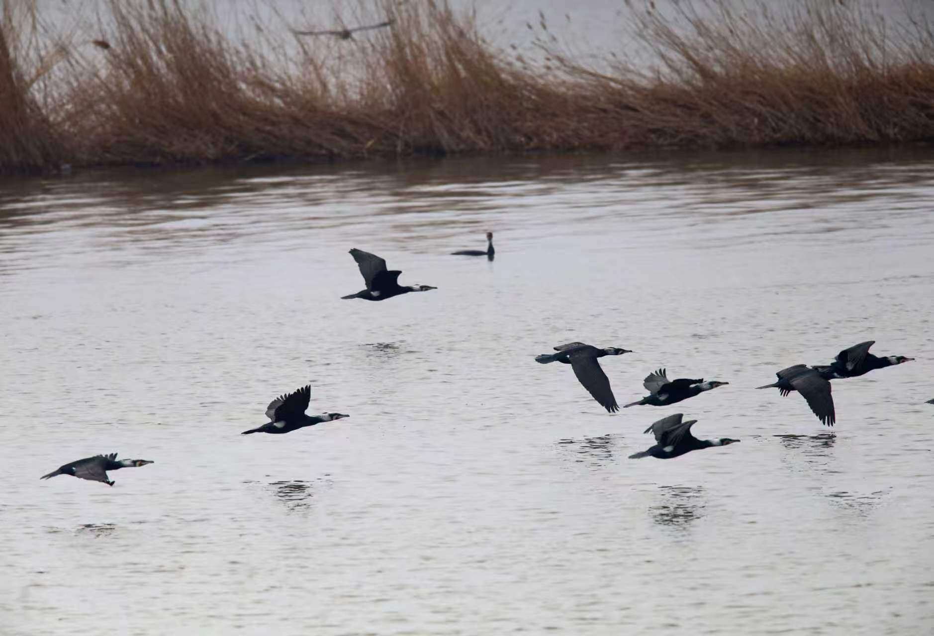 清晨时分,大麦科湿地被候鸟的喧闹声唤醒。数百只凤头鸊鷉舒展扇形尾羽在水面悠然滑行,不时潜入水中捕食,叼着小鱼浮出水面时,涟漪层层散开,搅碎了水面倒映的云影;芦苇荡内,琵鹭迈着纤细长腿优雅漫步,凭借细长喙部精准捕捉浅滩猎物;浑河岸边,成群白骨顶鸡羽毛油亮,相互嬉戏打闹,水花四溅引得群鸟翻飞;绕阳河上空,鸬鹚列队掠过水面,落水声响惊起反嘴鹬,它们展开黑白羽翼,在空中划出优美弧线,长喙轻扫水面便啄起螺贝,一幅生动的湿地候鸟图景徐徐展开。