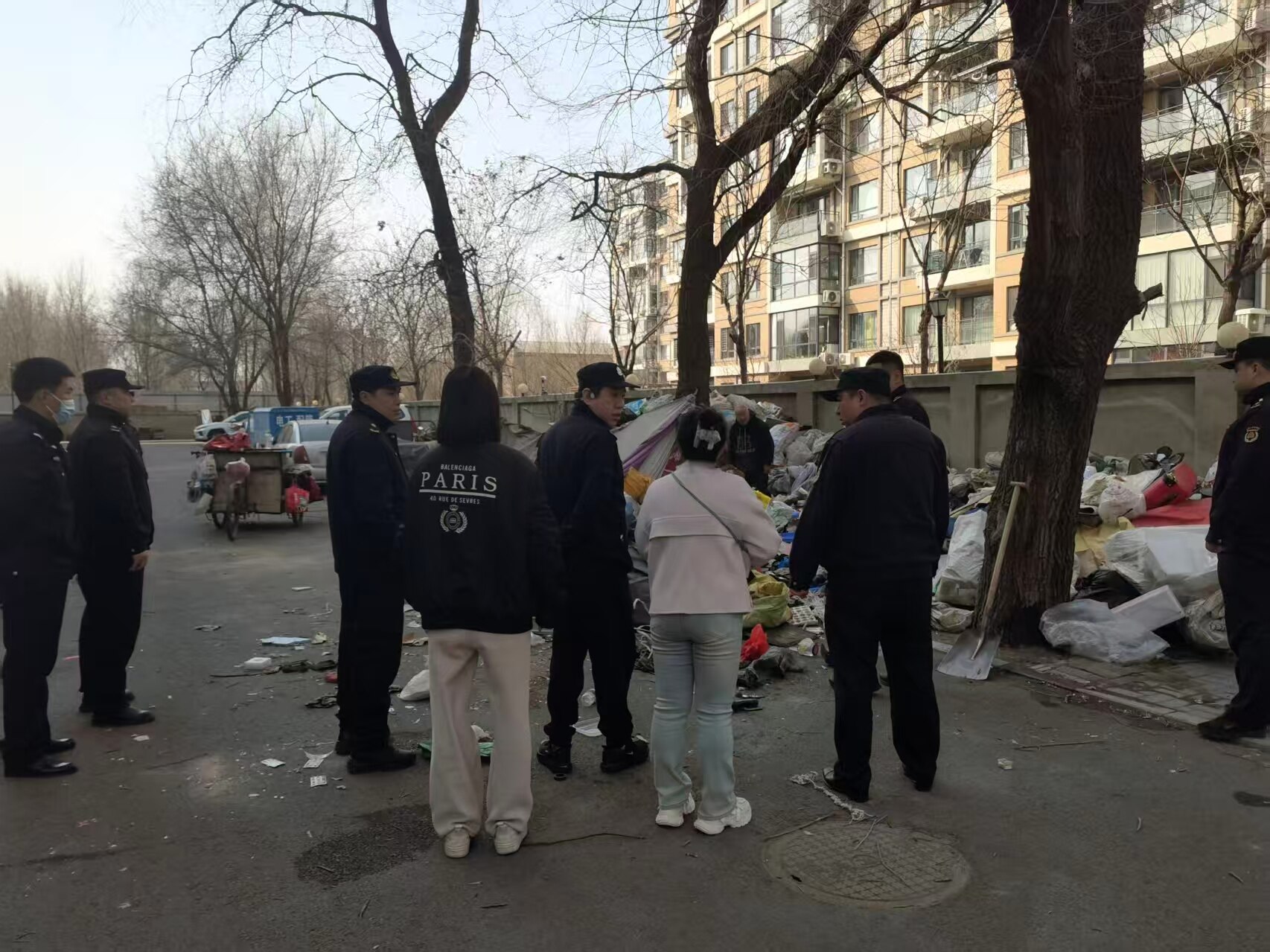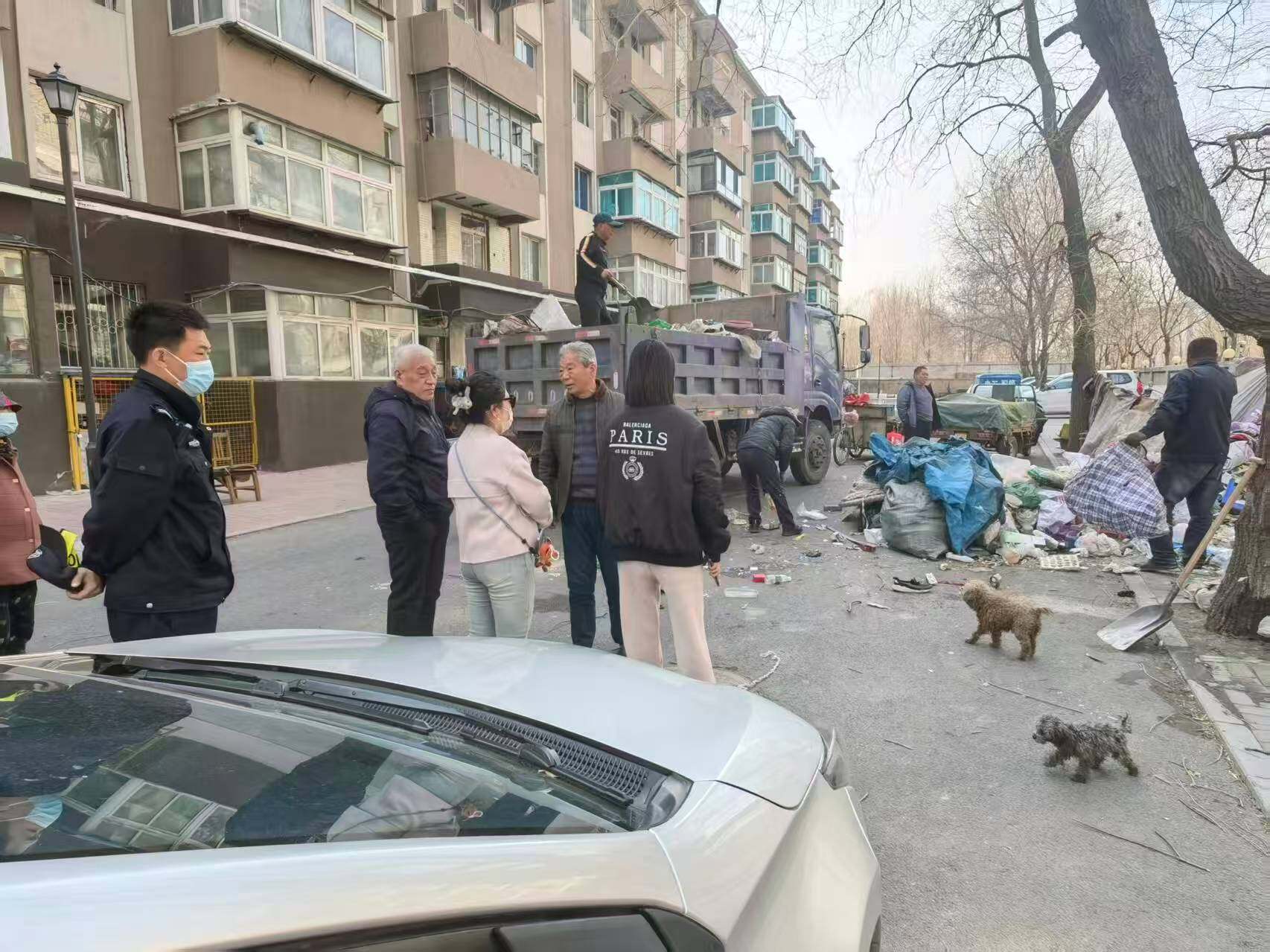 据介绍,社区辖区内有一户特殊困难家庭,丈夫是智力三级残疾,妻子沟通也不太顺畅,夫妻俩平时爱捡拾废品,堆在楼前公共区域,久而久之,废品越堆越多,不仅堵得居民出行不方便,还又脏又乱,存在消防和卫生防疫隐患,周边邻居意见很大,频频反映情况。得知情况后,大西社区党委书记芦毅立马带着工作人员上门走访。可面对沟通困难的夫妻俩,大家一时犯了难。于是,工作人员主动找到他们有民事行为能力的家属,拉家常、讲政策,一边说明垃圾堆积的危害,一边耐心沟通兜底帮扶事宜,慢慢解开了家属的心结,获得了理解和配合。