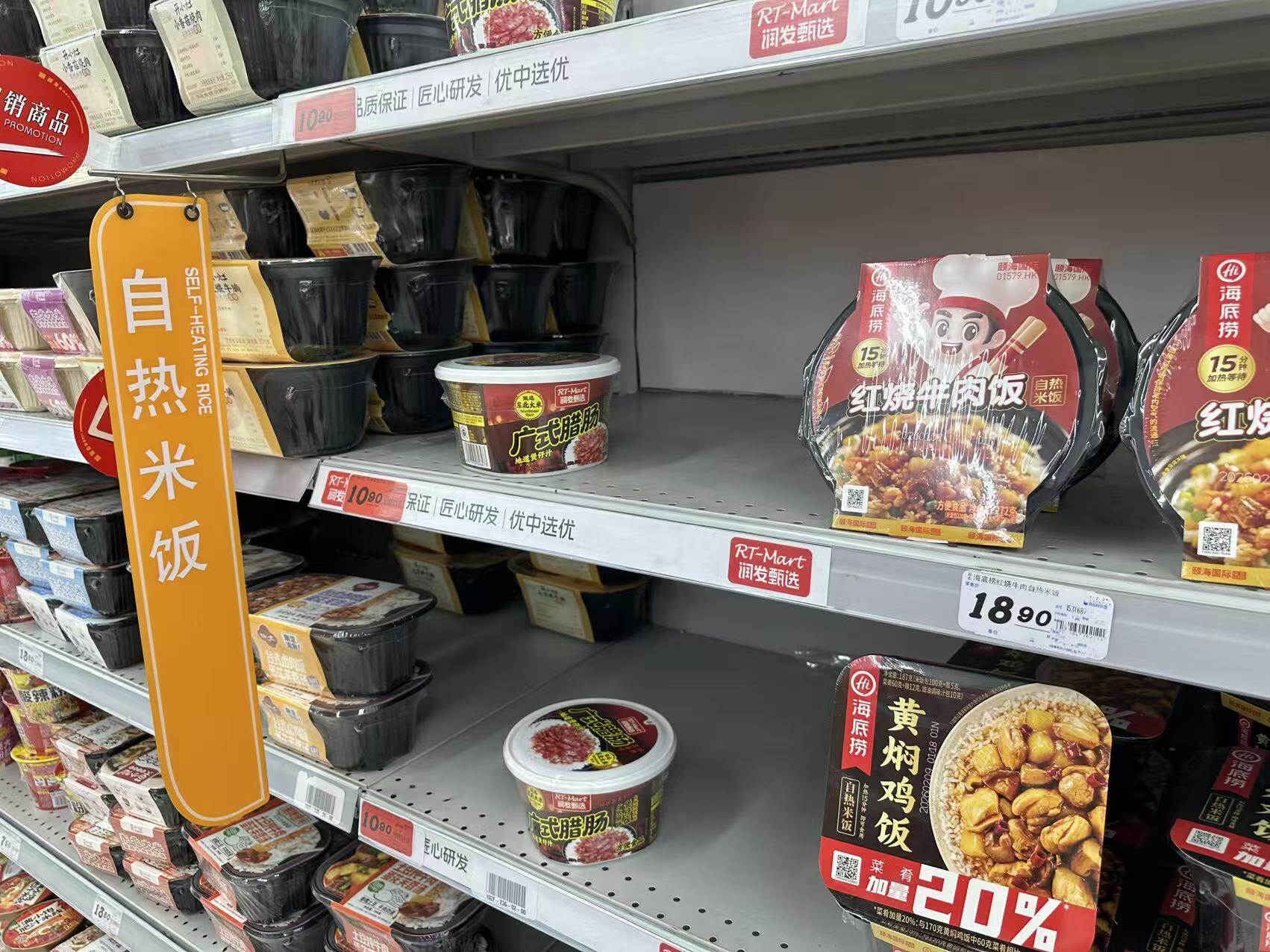 在一家超市内,折叠椅、野餐垫等商品被摆放在入口显眼位置,食品区的自热米饭、自热火锅和零食饮料成为销售主角。一位销售人员表示,春日踏青出游热情高涨,食品需求增加,超市线上平台推出“踏青出游”主题活动,同样热度不减。一些自热食品补货频繁,很受欢迎。