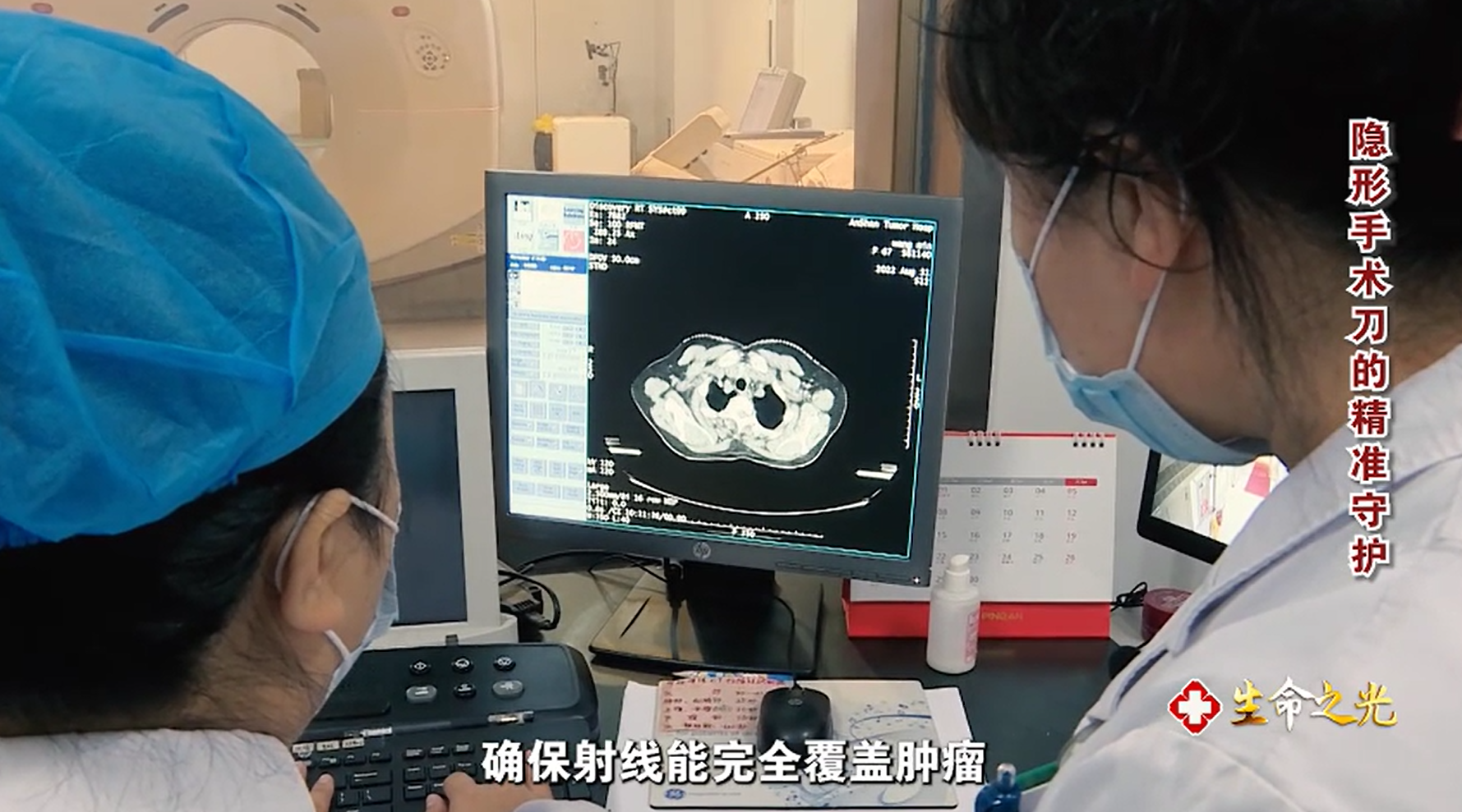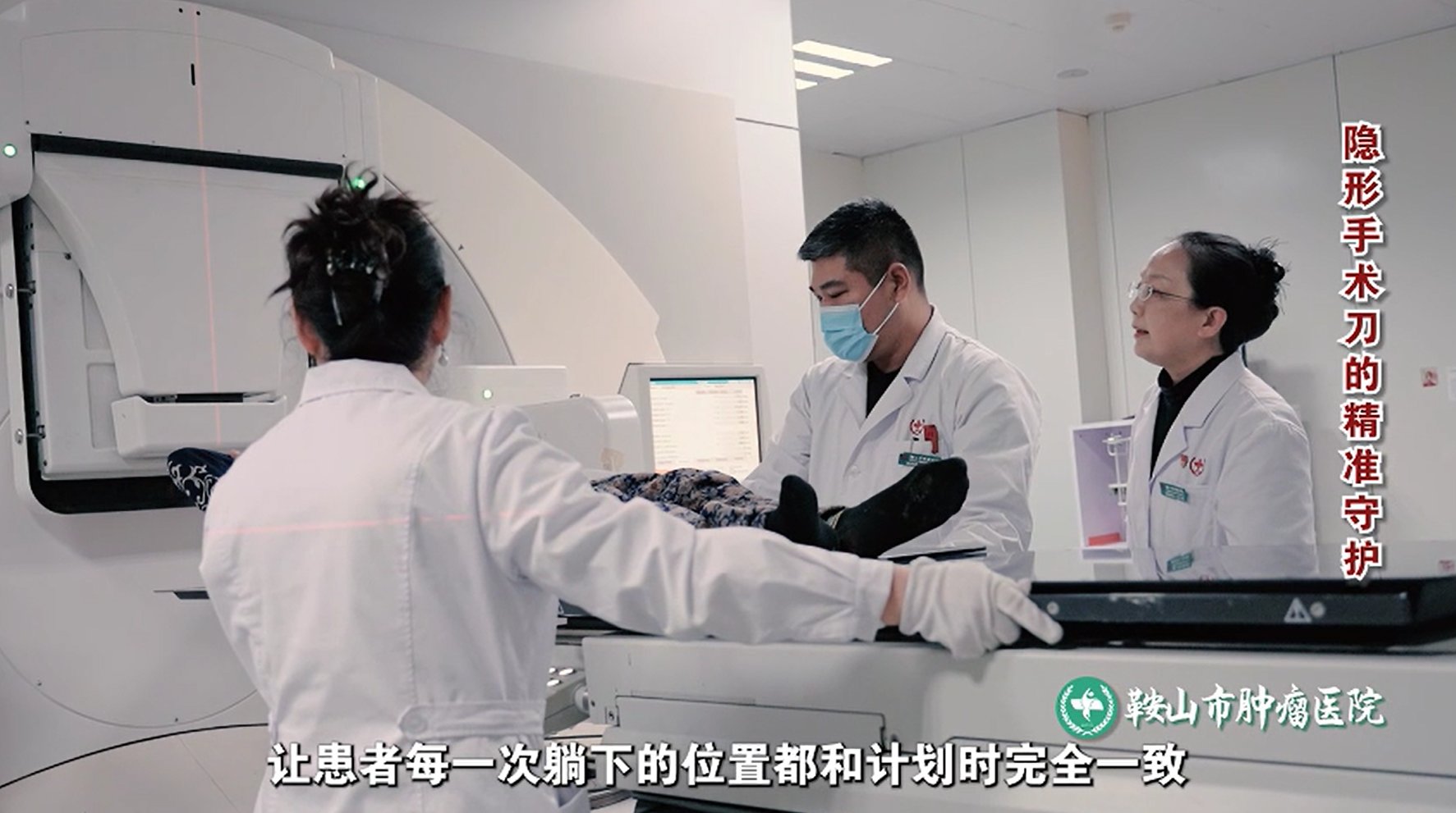 4.计划做好了,接下来就是每天的治疗实施。这一步由放疗技师负责,核心任务是精准摆位,让患者每一次躺下的位置都和计划时完全一致。