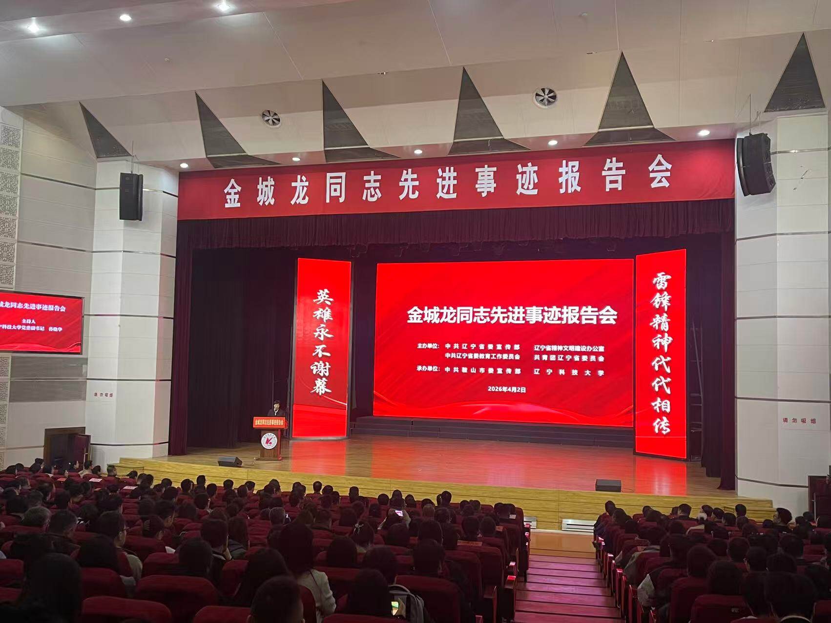 英雄永不谢幕,雷锋精神薪火相传。2日,由省委宣传部、省精神文明办、省委教育工委、团省委主办,市委宣传部、辽宁科技大学承办的金城龙同志先进事迹报告会在辽宁科技大学礼堂举行。全市各界1000余人,共同追忆了金城龙短暂而光辉的一生。