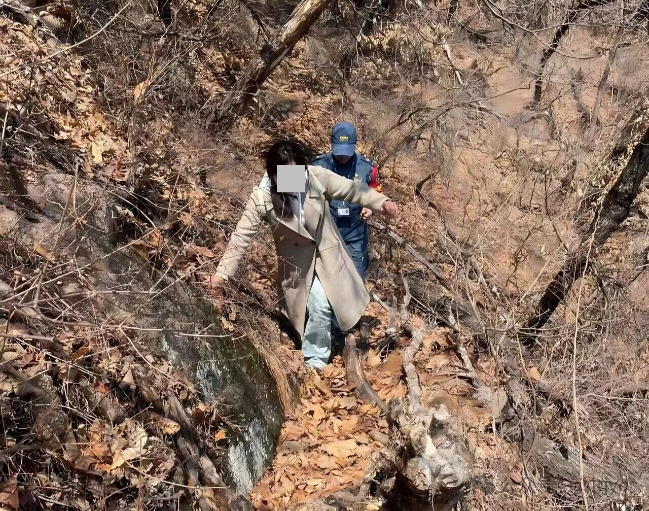 当天上午10点半左右,鞍山市蓝天救援队服务中心接到紧急求助电话,求助人在电话中自述,自己在登山途中进入未开发区域并迷失方向,需要救援。接到求助后,蓝天救援队在10:37启动后方平台,经研判符合出队条件,并根据求助者所在位置,联系正在景区进行保障任务的队员立即前往求助者所在位置,开展救援行动。10:40,于辉、肖建东两名队员向求助者描述的位置开展搜救行动,11:12在一处没有路的山坡位置成功发现求助者,并陪同求助者返回景区。求助者确认可自行继续游览后,志愿者返回保障岗位。