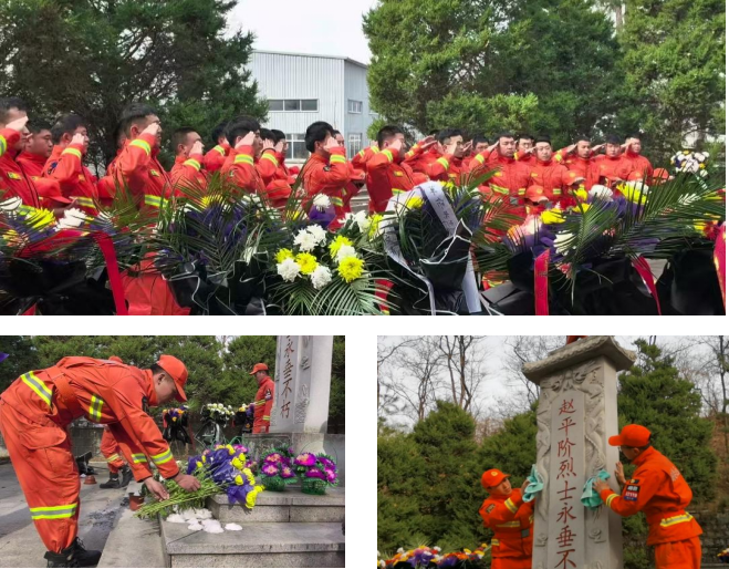 在烈士纪念碑前,大队负责人带领大家重温入队誓词,铿锵誓言回荡在陵园上空,彰显着森林消防救援队伍 “对党忠诚、纪律严明、赴汤蹈火、竭诚为民” 的坚定信念。随后依次绕行纪念碑,擦拭墓碑,以朴素庄重的方式追思先烈功绩、传承英雄精神。