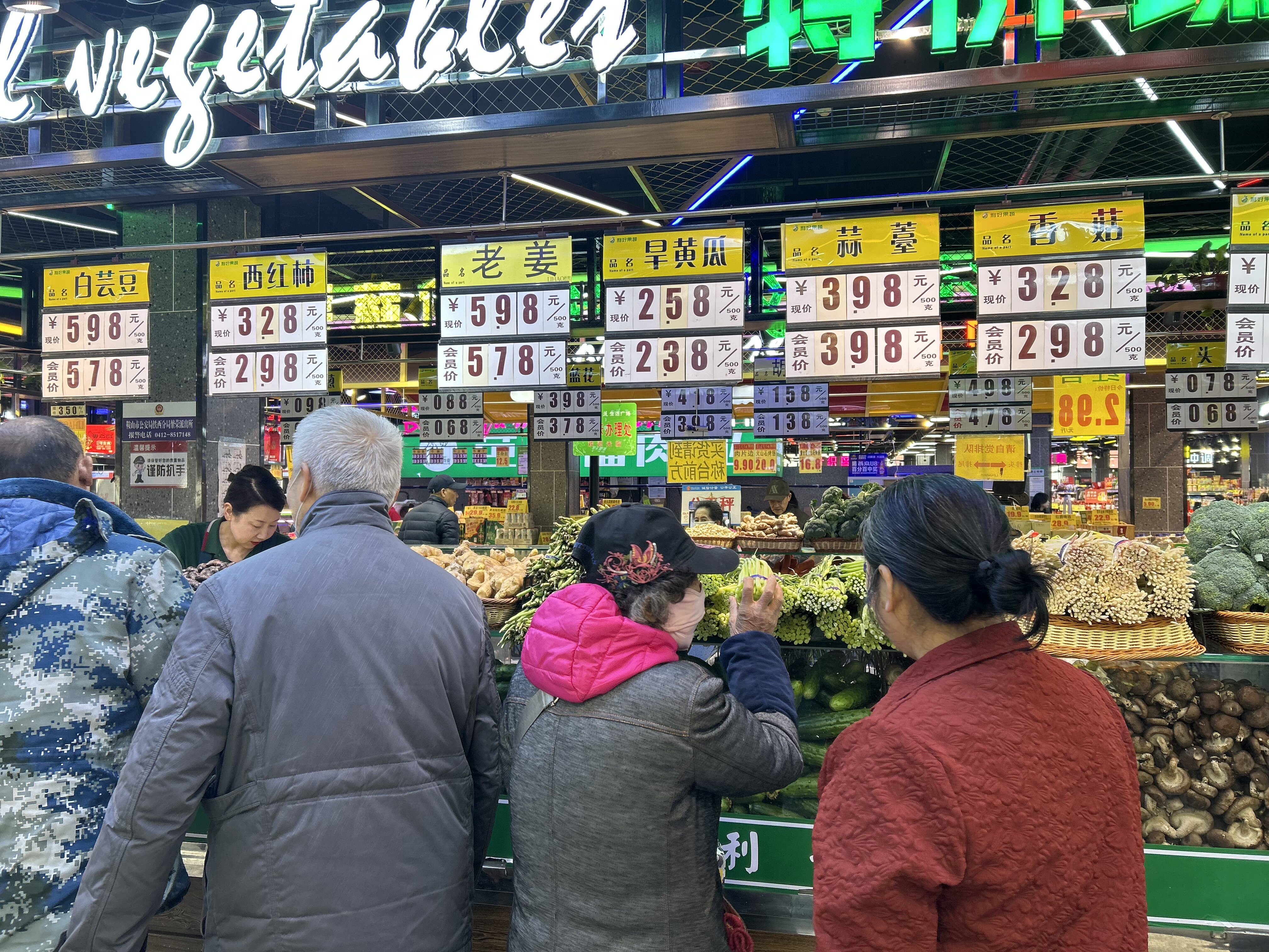 在利好超市太平店内,蔬菜区人头攒动,蒜薹摊位前时不时有前来挑选的市民,悬挂的价格牌上清晰标注着,现价3.98元/斤,而就在几天前,零售价还维持在5.98元/斤,短短时间内每斤直降2元,降幅超三成。正在挑选蒜薹的市民王女士告诉记者:“前阵子蒜薹挺贵,一斤快6块钱,一直没怎么舍得买。现在价格降下来了,多买几斤,回家炒肉、腌蒜苔都合适。”