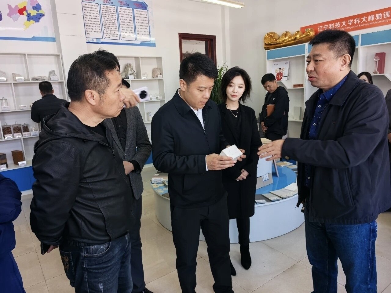 企业家刚一踏入校园,便被浓厚的学术氛围所感染。校方负责人详细介绍了学校的办学历史、学科建设、科研创新及人才培养成果,并就深化校地合作、校企共赢提出展望。随后,企业家一行先后参观了校史馆与科技成果展示区,全面了解学校发展历程、办学底蕴及近年来在科技创新、成果转化、学生实践等方面取得的突出成效。