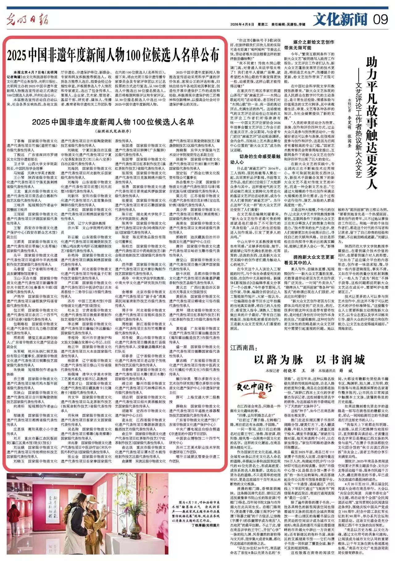 接下来,光明日报非遗传播专家委员会及专家评审团将以无记名投票的方式进行复选,从100位候选人中推选出30位提名候选人。最后再根据网络评议和专家评议,从30位提名候选人中选出10位2025中国非遗年度新闻人物。