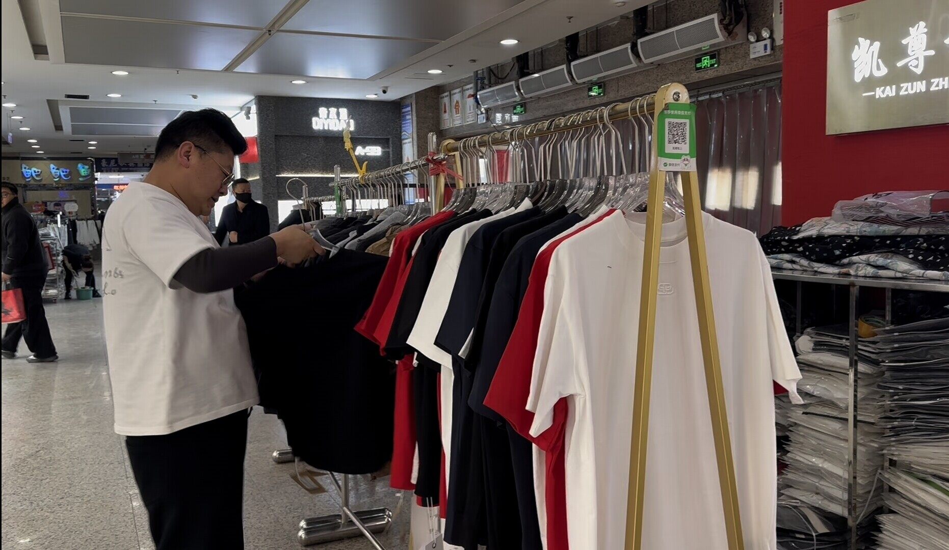 A座三层女装区更是一派热火朝天的备战景象。为精准抓住“五一”出游、换季穿搭的消费热点,商户们纷纷撤下秋冬滞销款,将精心筹备的夏季新款逐一挂板上架。“就等着‘五一’这波消费热潮,这批中国风夏装就是我们的主打款,直播间刚预热就爆单,线下订单也排满了!”店主杨女士手里的笔不停飞舞,快速记录着源源不断的订单信息,身边店员忙着接待上门看货的批发商,桌上两部手机同时响起,直播下单、客户咨询的提示音此起彼伏。依托线上直播带货、线下批发供货双轨发力,她的店铺订单量较去年同期暴涨近三成,眼下正加急备货,全力满足“五一”前后的市场需求。