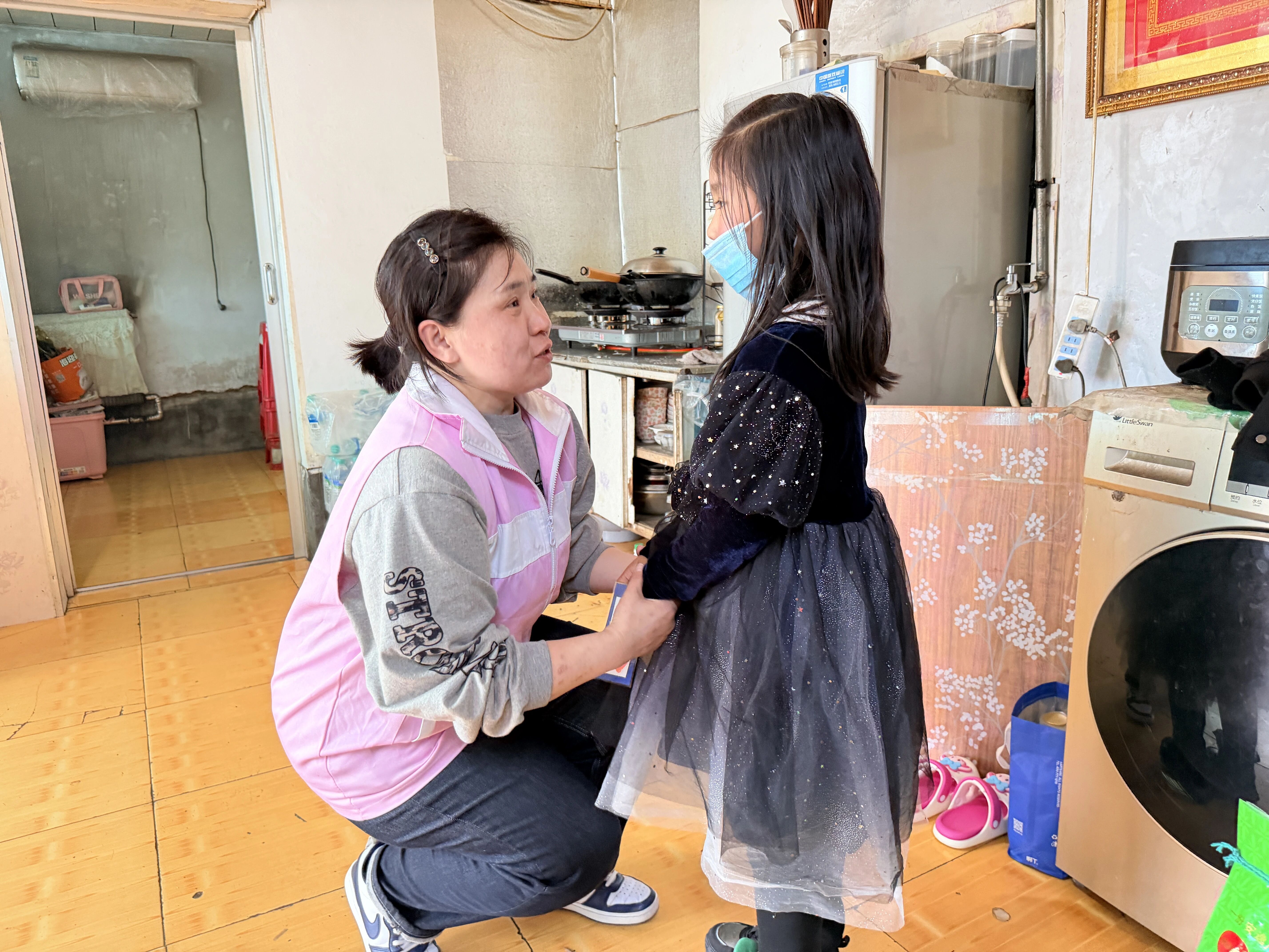 每走进一户家庭,爱心妈妈们便立刻俯下身,温柔牵起孩子们的小手,轻声细语地嘘寒问暖。大家仔细翻看孩子的作业本,详细询问学习进度、课堂表现,耐心叮嘱他们认真学习、注意出行安全;针对孩子因家庭困难产生的内向自卑情绪,爱心妈妈们贴心陪伴、暖心疏导,用励志故事鼓励他们乐观向上,让孩子们真切感受到胜似亲情的温暖。