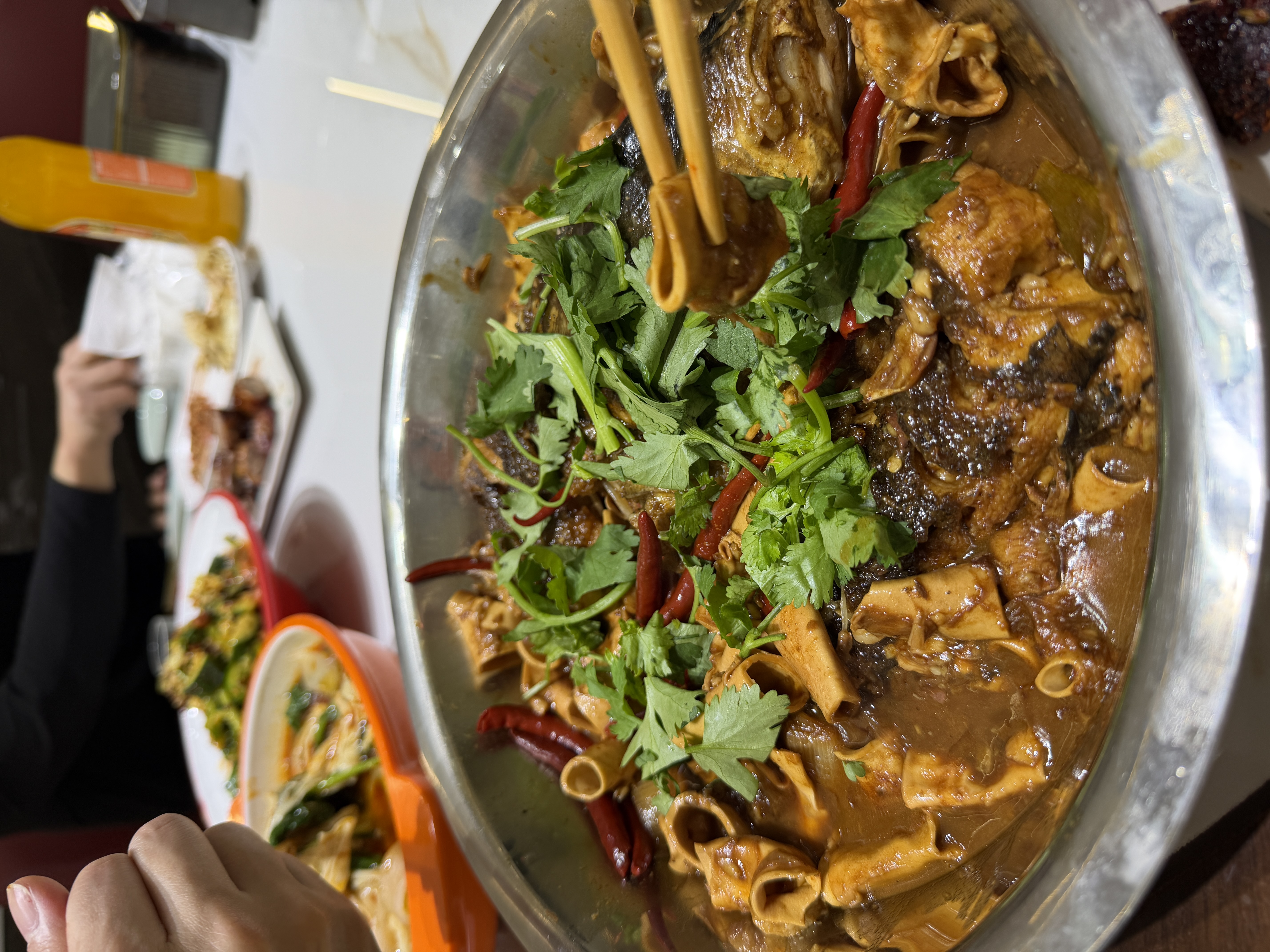三里桥烧烤的出圈,源于对食材本味的极致坚守与创新烹饪的巧妙融合。走进村里的烧烤店,每家店的招牌菜单上都少不了几样“灵魂菜品”,其中鲢鱼炖心管更是堪称“镇店硬菜”。选用新鲜的大鲢鱼,搭配弹牙的猪心管,鱼肉吸饱了浓郁的酱汁,软嫩入味,心管则保留了脆韧的口感,一碗炖菜就能让食客连拌三碗米饭。