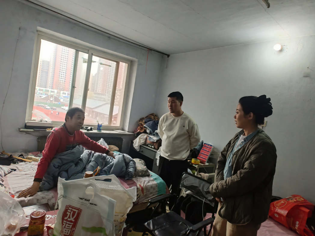 慰问中,办事处工作人员向居民及其家属细致询问病情恢复情况、日常护理需求以及家庭生活近况,耐心倾听他们在生活中遇到的难处。得知该居民因重病导致行动不便,缺乏合适的辅助器具,日常起身、出行都极为困难后,程主任现场联系爱心企业帮其解决轮椅问题。针对该家庭因重病就医产生较大经济压力、生活负担较重的情况,工作人员现场对照低保救助政策,指导家属准备相关申请材料,安排专人全程跟进、加快办理,确保符合条件的救助政策及时落地,有效缓解家庭经济困难。同时鼓励居民及家属保持积极乐观的心态,安心休养,有困难及时向社区和街道反映,街道、社区会持续做好帮扶工作。