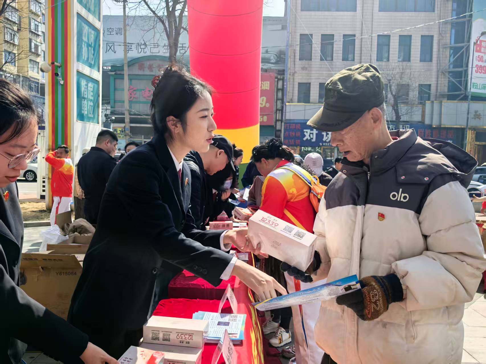上午,苏宁广场成为宣传主阵地,现场热闹非凡。活动开场,舞龙表演灵动腾跃、非洲鼓点铿锵激昂,迅速吸引大批市民驻足围观。普法宣传正式启动后,铁西区政法单位在现场设置咨询台、展板与资料发放区,干警们向群众发放《国家安全法》《反间谍法》等手册,结合案例讲解政治安全、网络安全等知识,耐心解答法律疑问。