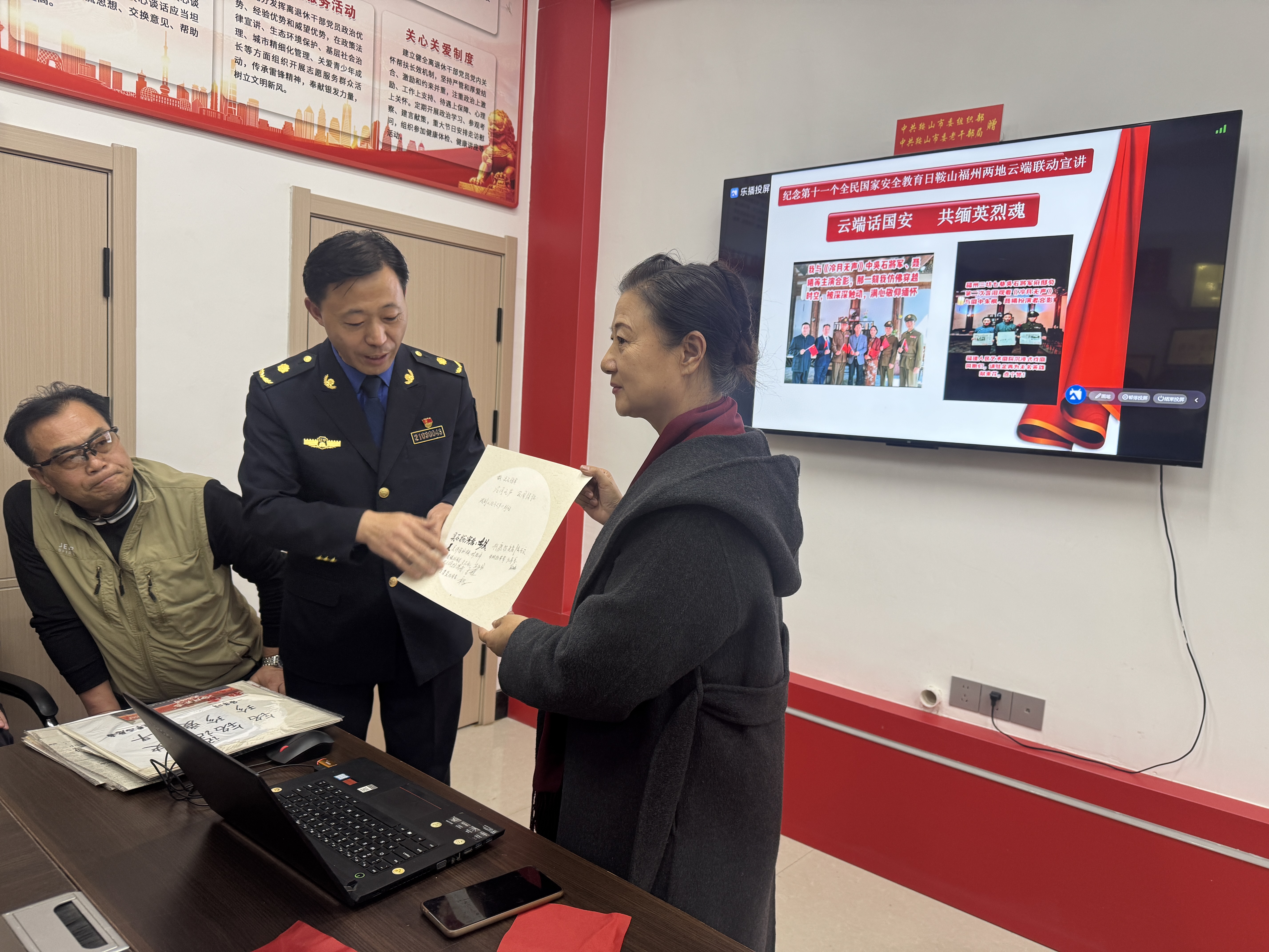4月15日是第十一个全民国家安全教育日,当天下午,在铁东区园林街道东宾社区新时代文明实践站,市关工委思想道德教育报告团、退役军人红色经典宣讲团、鞍山散文学会散文诗分会等单位与福州嵩阳诗社共同举办“云端话国安·共缅英烈魂”主题纪念活动,福州市工人文化宫设云端连线会场。两地主办单位代表、社区党员群众、退役军人代表等共上一堂国家安全教育课。