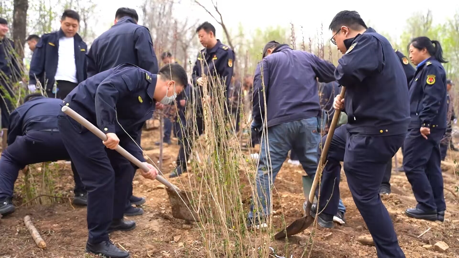 活动现场,干部职工们热情高涨、分工协作,挥锹铲土、扶苗填坑、踩实浇水,严格按照绿化技术标准规范栽植,每一道工序都认真细致。在技术人员的现场指导下,大家齐心协力种下300株海棠树苗,为春日的公园增添一抹生机与亮色。