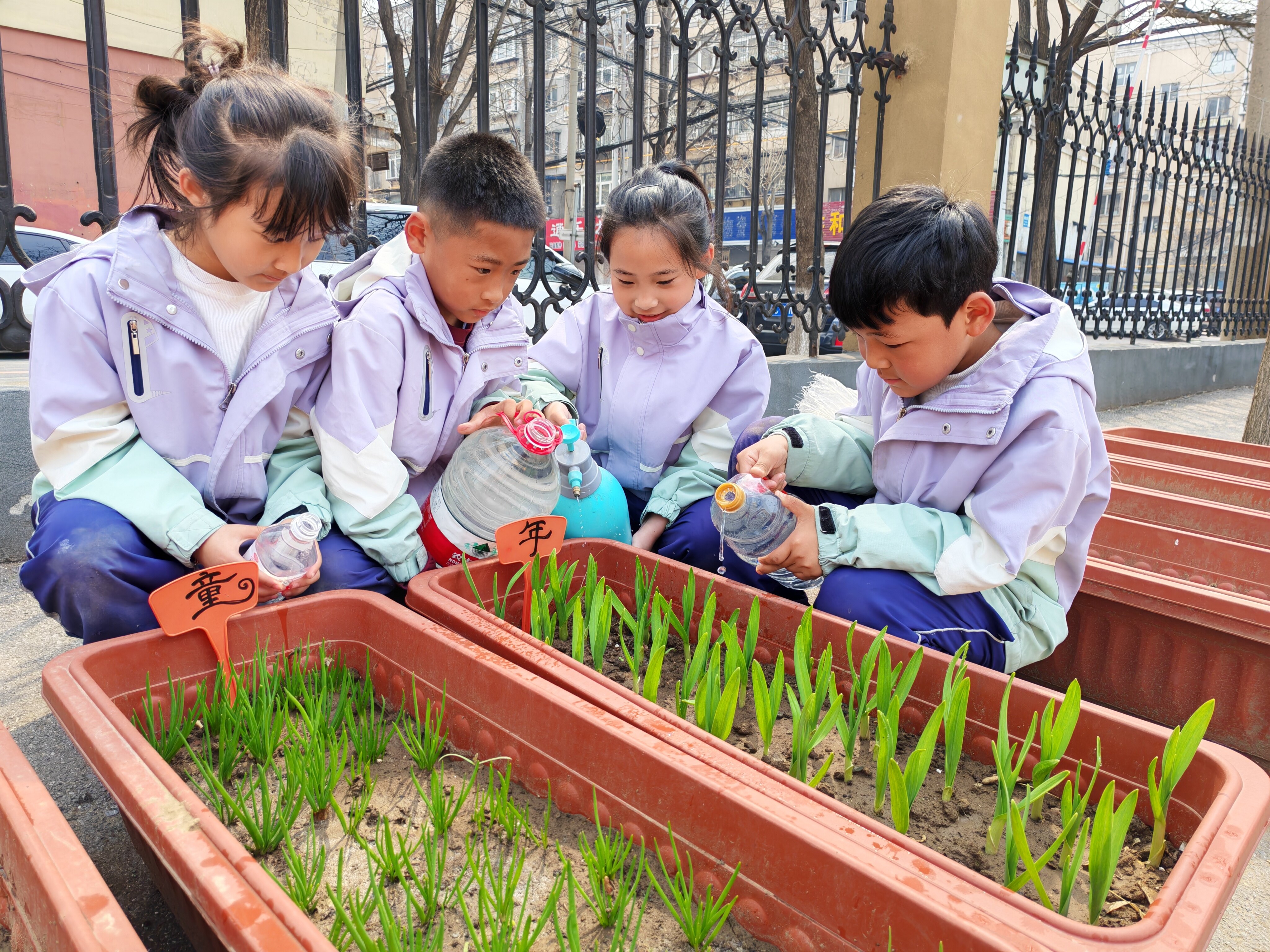 “谷雨前后,种瓜点豆。”在铁西区跃进小学的课堂上,师生共同学习谷雨民俗与节气文化,同学们精心绘制节气手抄报、创作手工花枝、手绘黑板报,在笔墨创作中感受暮春诗意。而走出教室,孩子们又拎起水桶,细心浇灌菜园里的青苗,在躬行劳作里体悟农耕道理。从笔尖到指尖,从纸上到土里,孩子们在创作中感受诗意,在劳作中体悟“一分耕耘,一分收获”的道理。