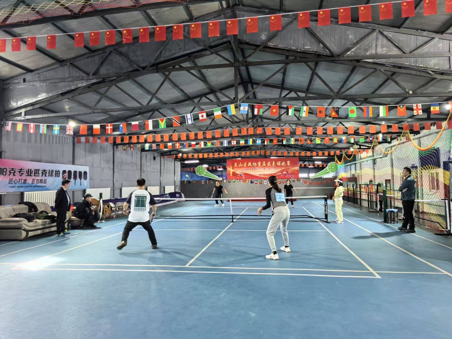 4月16日至17日,立山区政协首届匹克球比赛在众赢匹克球馆火热举行。来自区政协机关、区委统战部及各街道委员活动组的9支代表队、共54名运动员,在男双、女双、混双三个团体积分项目中展开激烈角逐。