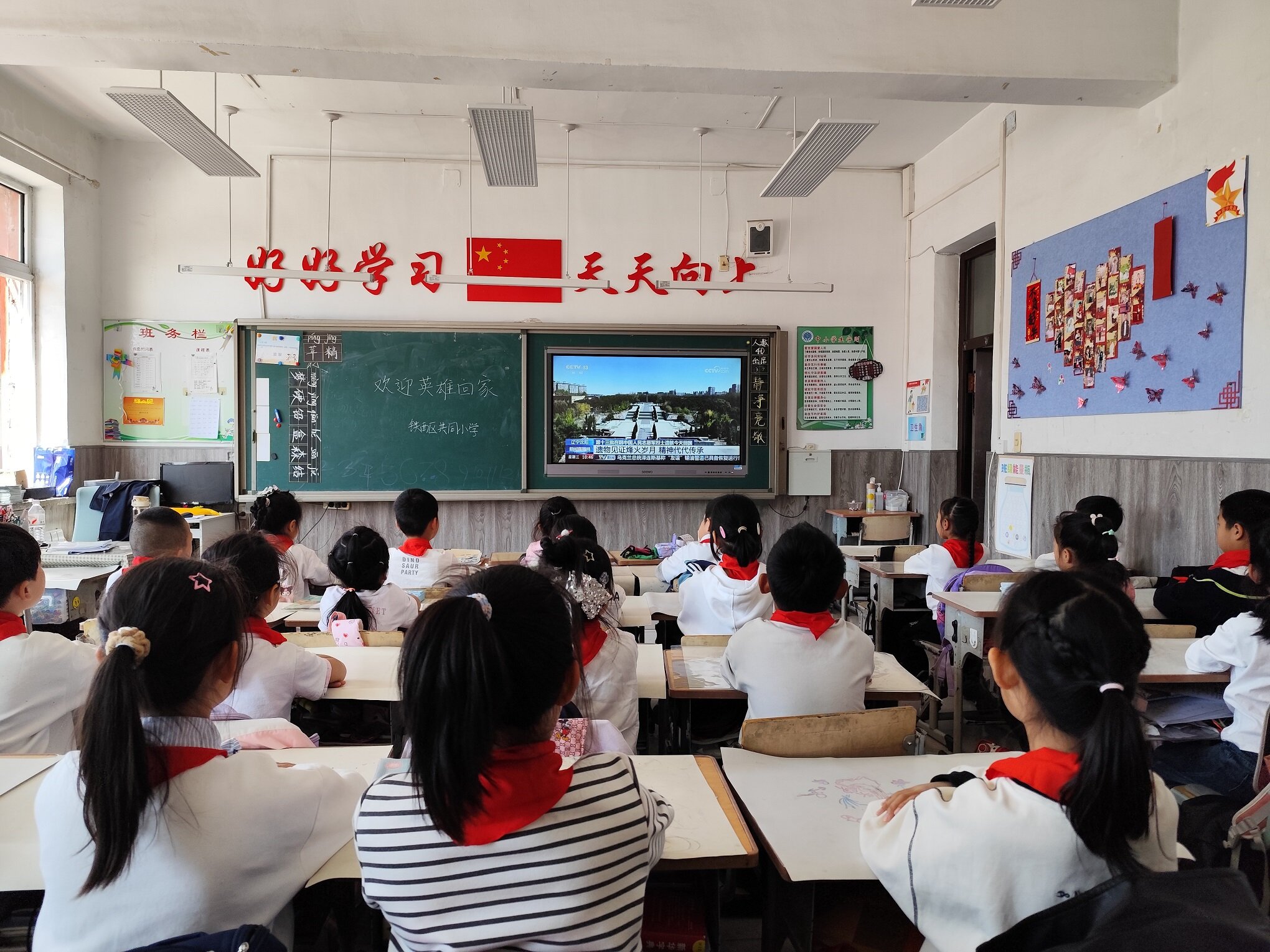 当日,铁西区民生小学、跃进小学、北地号小学、红星小学,立山区通山小学也组织学生收看了烈士遗骸迎回仪式,对学生进行爱国主义教育,在少年儿童心中点亮信仰与传承的火炬。