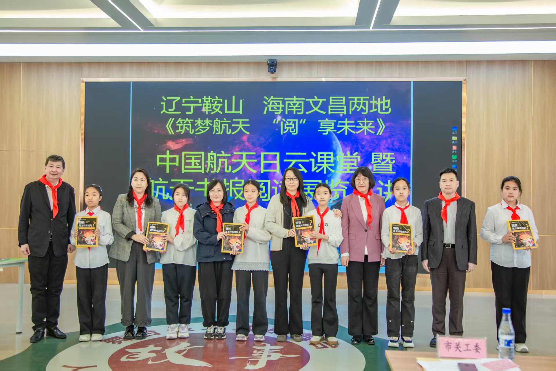 两地学生代表分享科技模型、诵读书信,字字抒发逐梦航天的美好向往。此外,经典航天人物读物推荐、航天主题电影推介、文昌航天邮局云游览、手抄报展示、红色歌曲表演精彩不断。“五老”代表与少先队员同台朗诵《钢城问天·山海同航》,深情诠释少年逐梦苍穹的初心,营造出书香浓郁、崇尚科学的浓厚氛围。活动最后,市科协为学生捐赠科普图书。