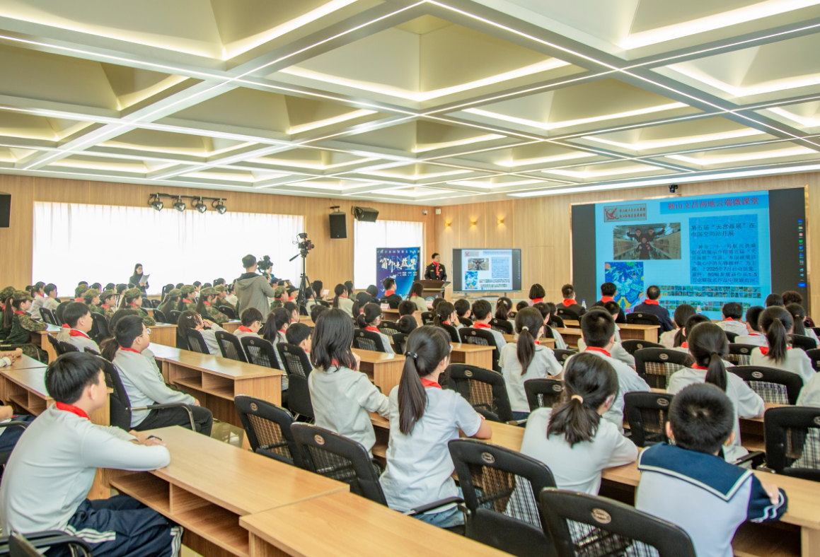 活动现场,省首批少先队校外辅导员、市关工委思想道德教育报告团副团长、市退役军人红色经典宣讲团副团长孙凯依托百余份珍藏书报史料,系统讲解世界与中国航天发展历程,细数“两弹一星”、神舟、嫦娥、火星探测等重大航天成就,以实物史料让航天发展历程可感可触。活动互动内容丰富,文昌航天小学展示办学特色,两地师生重温四年共建交流点滴;大家共同观赏天宫画展作品,沉浸式感受航天魅力。东方红一号发射亲历者张积华老人的视频讲述,重现峥嵘岁月。