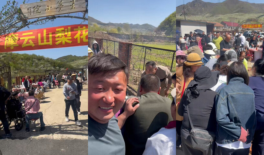“刷到抖音说摩云山梨花美,没想到还能赶上免费流水席,这东北小哥‘张摆事’也太敞亮了!”专程从沈阳前来踏青的游客李瑞,全程举着手机记录热闹宴席与春日山景。