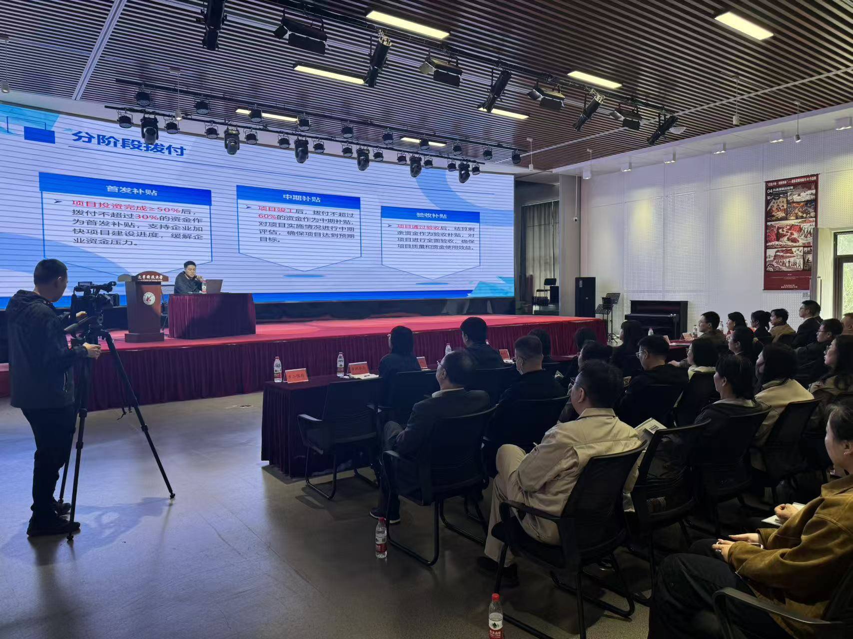 会场内座无虚席,来自市工信局、发改委、生态环境局、数据局、税务局等多部门及工商银行、鞍山银行等金融机构的相关负责人轮番登台,围绕智改数转、超长期特别国债、生态环保资金、研发费用加计扣除等企业关心的热点政策,逐一进行精准解读。台下,140余家企业的代表认真聆听、频频记录,不时举起手机拍下大屏幕上的政策要点。