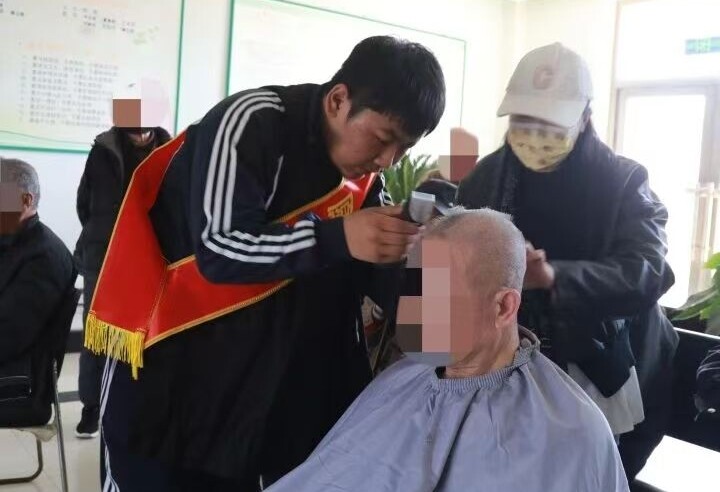 现场,美发与形象设计、美容美体艺术专业的志愿者有序地投入服务。美发专业志愿者手持剪刀,耐心询问每位老人的需求——有的根据脸型调整发型层次,有的蹲下身来为轮椅上的老人修剪鬓角。美容美体艺术专业的志愿者则主动为等候的老人揉按肩颈、轻捶手臂,缓解他们久坐的不适。与此同时,还有部分志愿者在院落、花坛中捡拾垃圾,清洁敬老院内的居住环境。