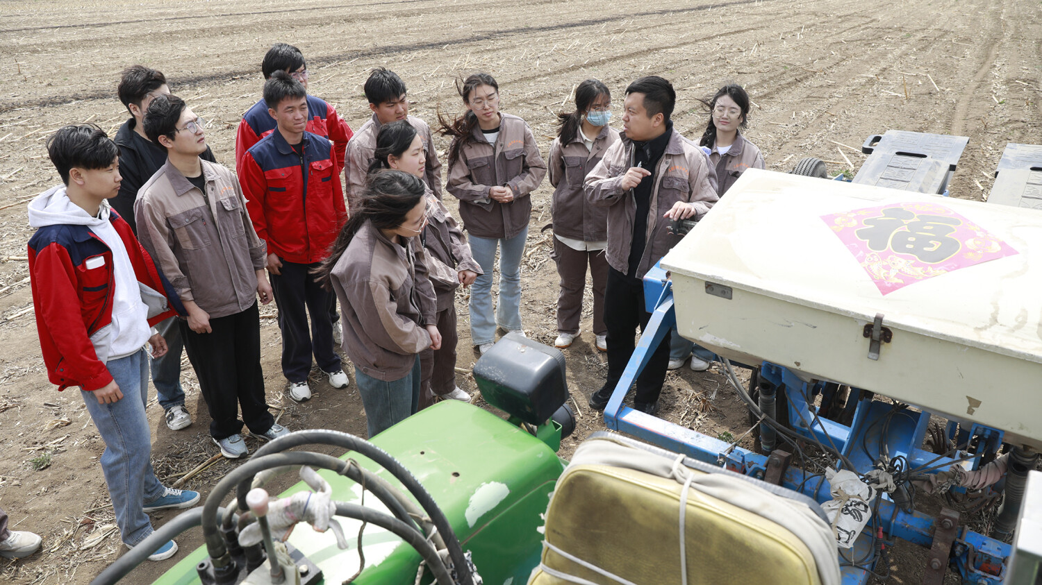 脚下沾有多少泥土,心中就沉淀多少真情。24日,在位于海城耿庄镇的沈阳农业大学海城创新创业示范中心的现代农业示范田里,机器轰鸣、人声鼎沸,一场别开生面的“春耕课堂”在此开讲。百余名学子告别教室、奔赴田间,躬身垄间、实操农机,在春耕一线沉浸式解锁“新农人”技能,将书本上的农业知识化作泥土里的实践本领。