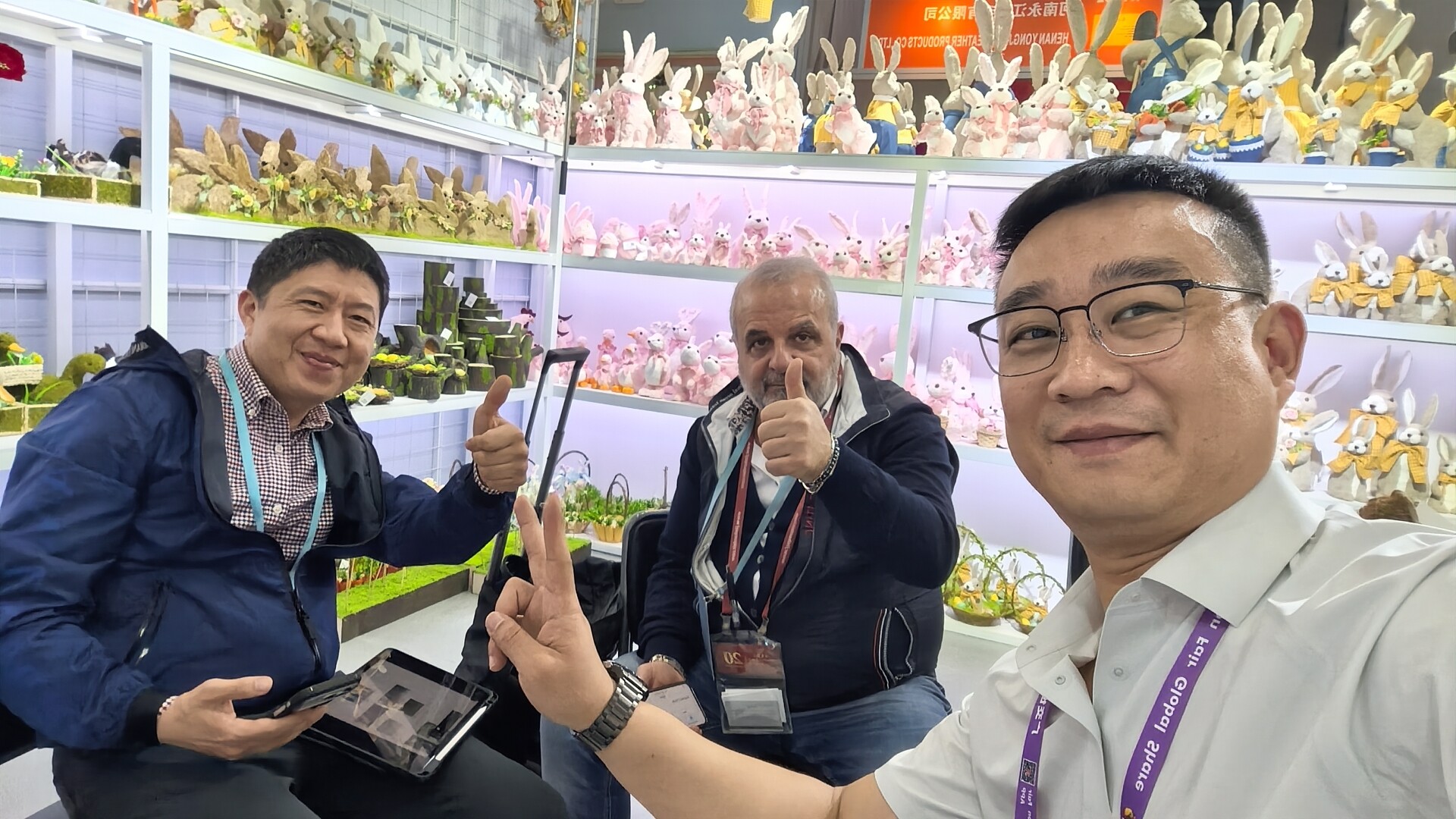 台安金业工艺品有限公司2003年创立于辽宁鞍山台安县,现已发展为超500人团队、年产值超百万美元的节日工艺品标杆企业。公司主营圣诞、复活节等手工艺品,涵盖自然材质、人造花果、羽毛制品等系列,产品远销多国,以创新与品质深耕国际市场。此次广交会,公司全部展品为复活节节日礼品,品种超千种,能够更好地迎合广大国外客户,本届展会第二天,来自欧盟与南美国家的客户就在展会现场上达成了超过40万美金的意向订单。