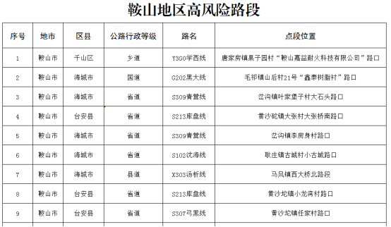 4、沈海高速鞍山站至千山西路:此路段为进出鞍山城区主要路段,来往车辆众多,请注意减速慢行。